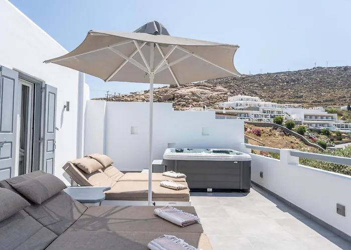 Situé à une distance de 2 km de la Maison de Lena, Villa Blue Waters Mykonos possède une terrasse et des écrans plats satellites. La villa comprend une cafetière/théière, un coin salon et une TV par satellite dans les chambres.
